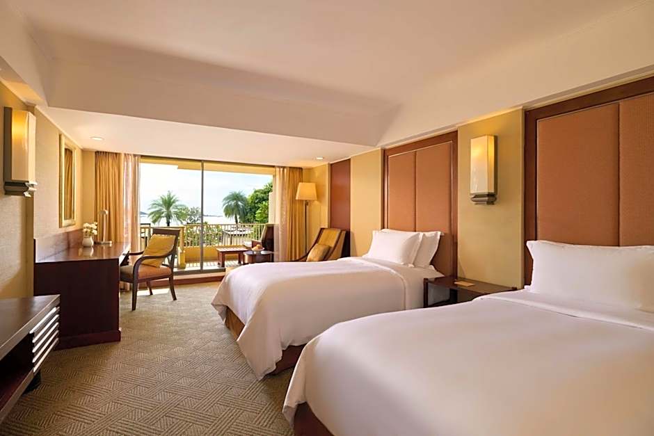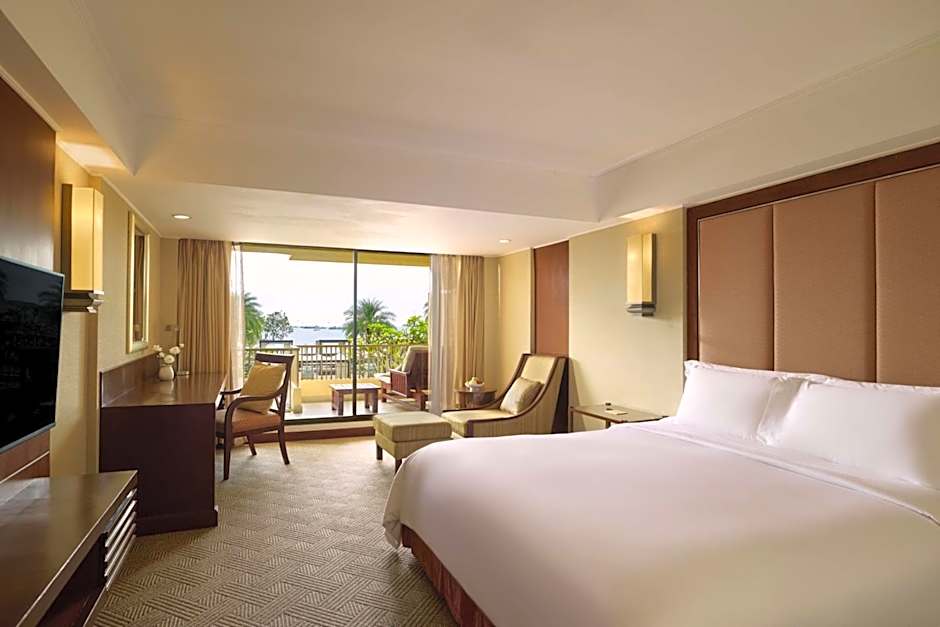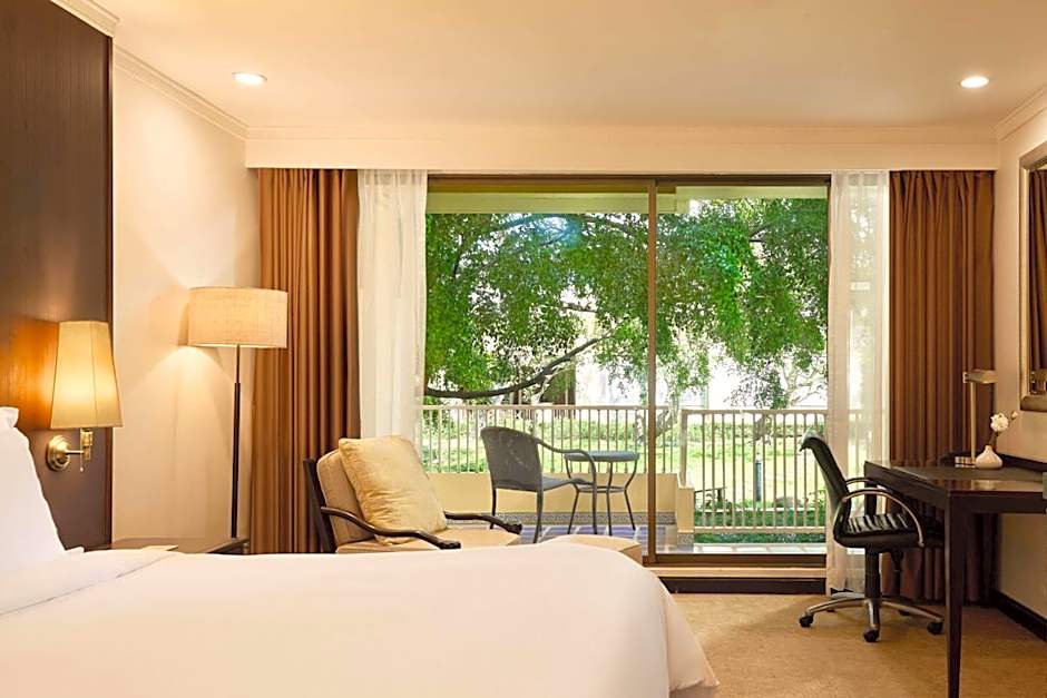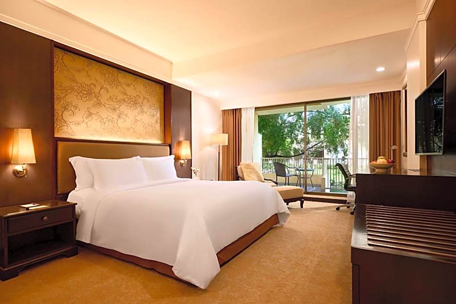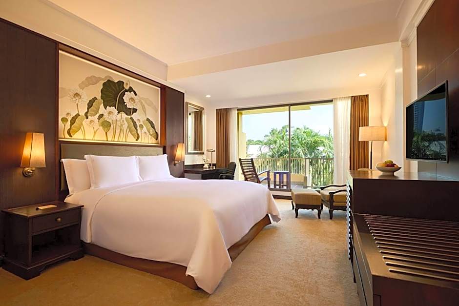 Room offers a pillow menu, large desk and views of the Gulf of Siam.
